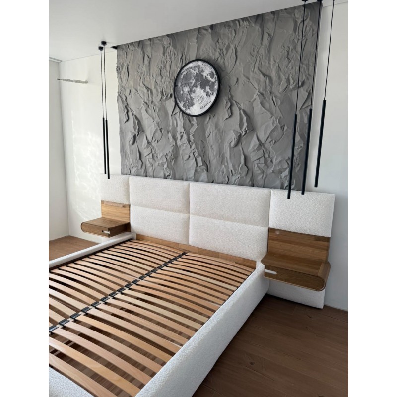 Виглядає сучасно, а завдяки можливості підібрати колір і оббивку органічно впишеться в будь-який дизайн! Якісна тканина Santorini, Puento, Nubia, Donna, Hug Me і фактура дуба роблять його максимально зручним! Таке ліжко помітно розширює функціонал спальні, створюючи елегантний і витончений образ!