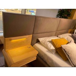 Комфортне й надзвичайно стильне ліжко, виготовлене з натурального дуба і ясена (внутрішній каркас), з великим м’яким узголів’ям і стилізованими шухлядками з притопленим фасадом і підкресленою фаскою.