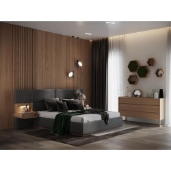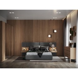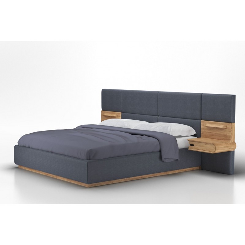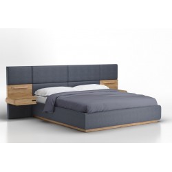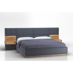 Комфортне й надзвичайно стильне ліжко, виготовлене з натурального дуба і ясена (внутрішній каркас), з великим м’яким узголів’ям і стилізованими шухлядками з притопленим фасадом і підкресленою фаскою.