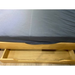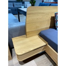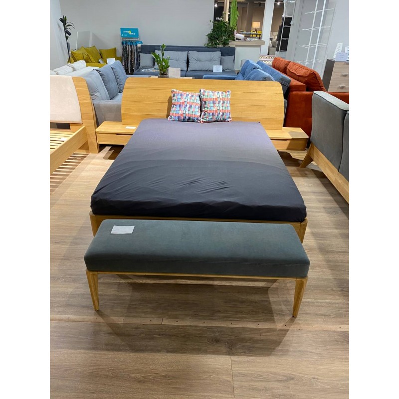 Стильне ліжко з масиву дуба в комплекті з двома тумбами.