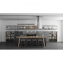 Є острів, відкриті полиці, ковзні елементи і багато ящиків для зберігання. Базова модель поєднує у собі різноманітність комплектації й ефективного дизайну. Це дозволяє налаштувати його для себе. Створюйте комфорт з елементами декору і змінюйте інтер'єр кухні залежно від вашого настрою.